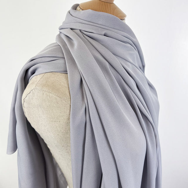 Gorgeous good quality polyester georgette dress fabric in pale grey, georgette is often used for evening gowns, bridal wear, and special occasions, but is a versatile fabric used for many different cuts of dresses, including a-line, pleated, flare, and wrap dresses. It is also suited for midi dresses and maxi dresses with both long sleeves and short sleeves.