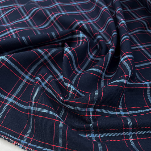 This 100% cotton shirting fabric in a navy hue has a fine blue and red overcheck that makes it look just that little bit different. This high-quality cloth promises both comfort and style.
