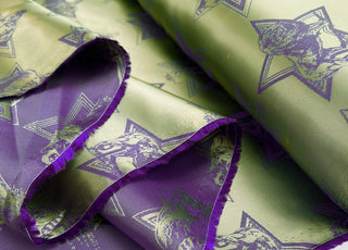 Superb quality viscose acetate tailors' lining inspired by PT Barnum from one of Italy's most creative mills. In iridescent green and purple.
