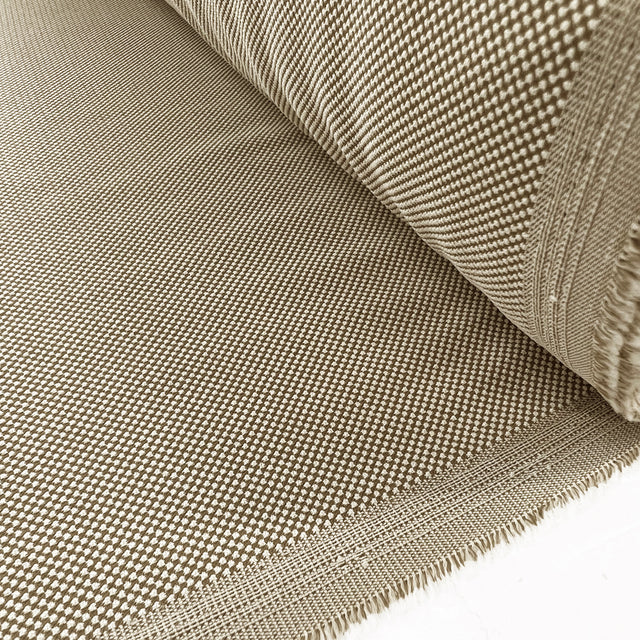 Our 140cm wide, polyester suiting fabric features a tiny diamond weave in beige, perfect for skirts and loose pants!
