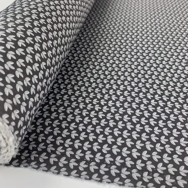 147cm wide Poplin cotton floral dress fabric in grey with an all over light grey ditsy leaf print. A similar quality to our narrower poplin prints range this is a lovely cotton material for making dresses, shirts but is also a good cotton for general craft making too. These are also wider than the poplin prints collection of fabrics.