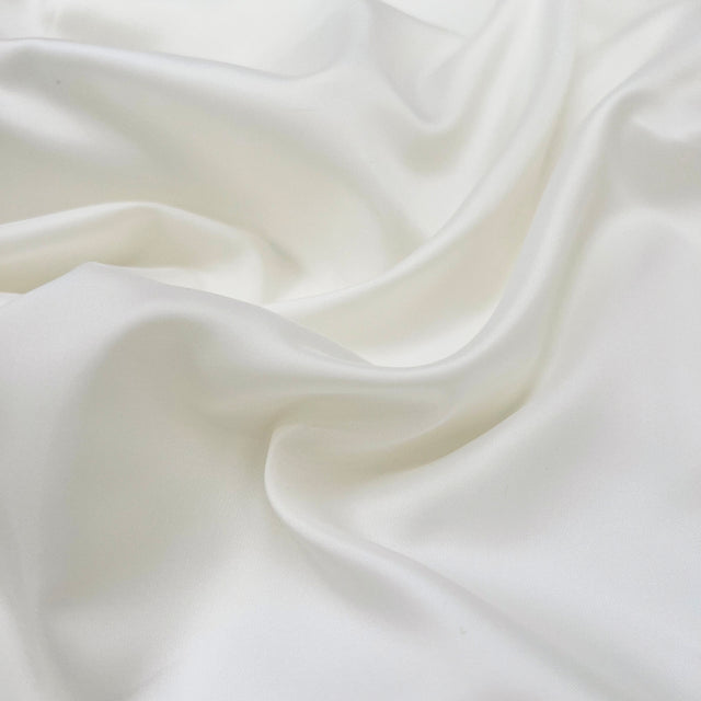 Gorgeous ivory dress fabric with a luscious satin finish. 152cm wide nylon lining fabric, perfect for using as a soft jacket and suit lining.