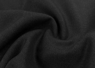 150cm wide, British 100% wool crepe fabric in classic black with a fluid drape and breathable feel.