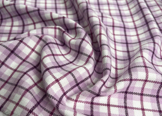 Italian ex-designer brushed cotton, 150cm wide, 168gsm. Pink, lilac, and cream check