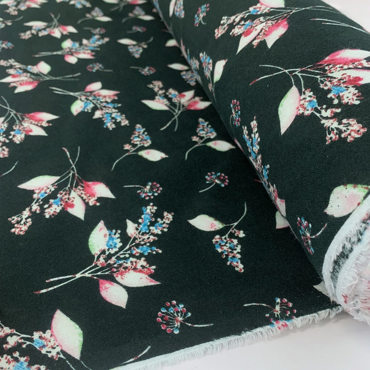 | Lightweight brushed cotton shirting, wonderful for dresses too. With a soft hand and lovely finish, this one comes with an all over Elderberry like design in soft white, pale blue and pink on dark green ground. There is no doubt this is trying to mimic a Viyella cotton, a fabric of bygone era. It doesn't quite get there but nonetheless, it is still very nice. | |