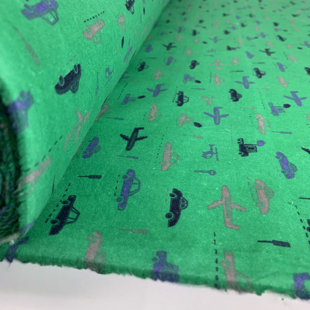 | 152cm wide, 100% cotton Winceyette flannel fabric in green with a variety of vehicles printed in shades of blue and grey. Perfect for winter pyjamas, hot water bottle covers. | |