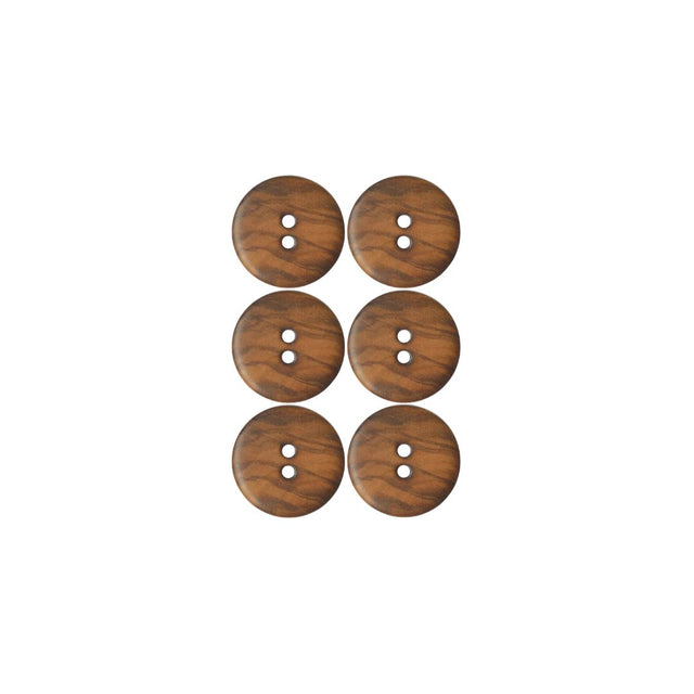 Embrace a vintage aesthetic with this pack of 6 2-hole burnt wooden sew-in buttons. Measuring 15mm, these buttons exude rustic charm, perfect for adding a touch of warmth and character to your sewing projects, garments, and crafts