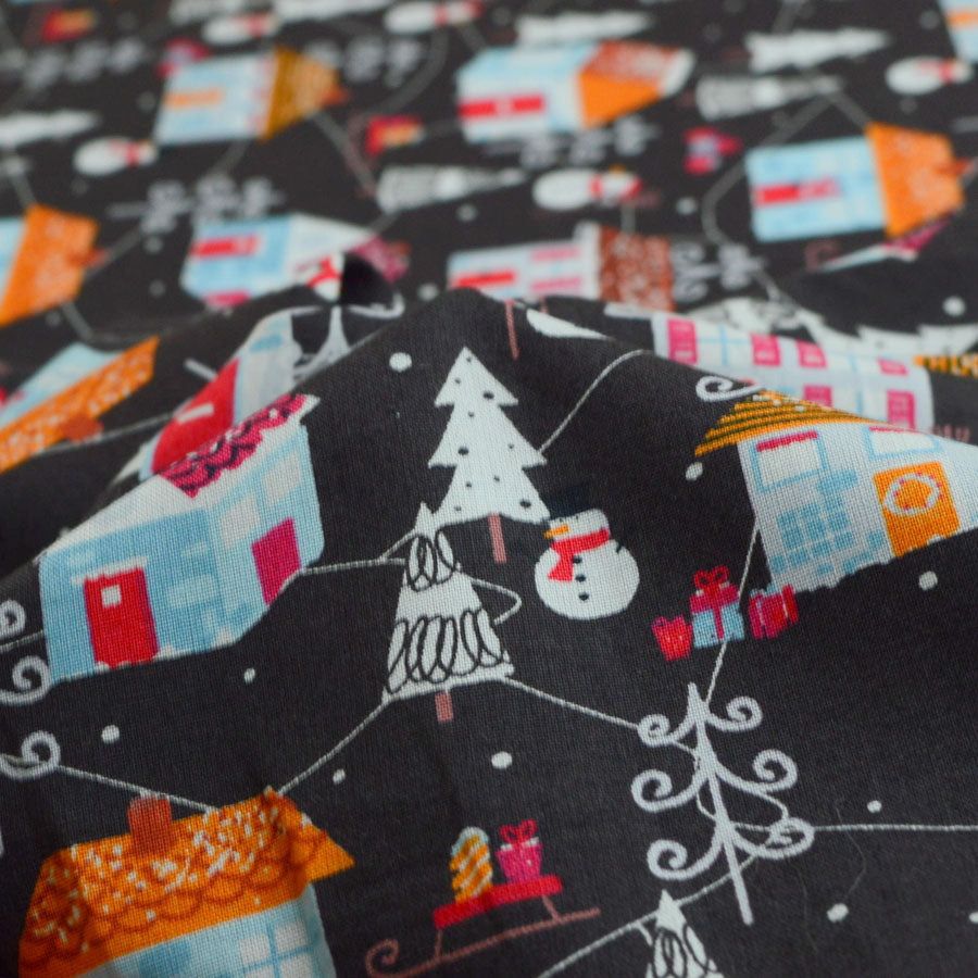 146cm wide 100% lovely quality cotton craft cotton. This Christmas print comes in black with an all over wonderland theme print.