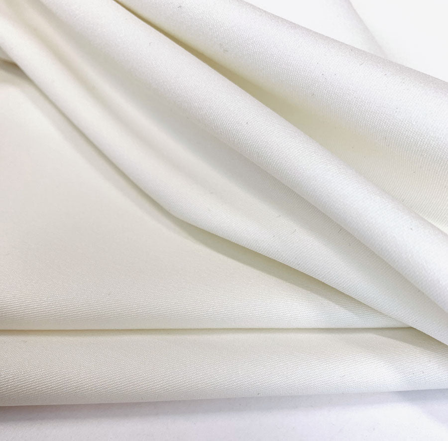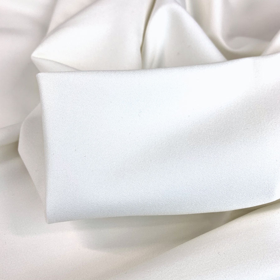 | 145 cm wide cotton, polyester, elastane suiting in Ivory. Absolute elegance. This would make a beautiful trouser suit for a wedding. | |