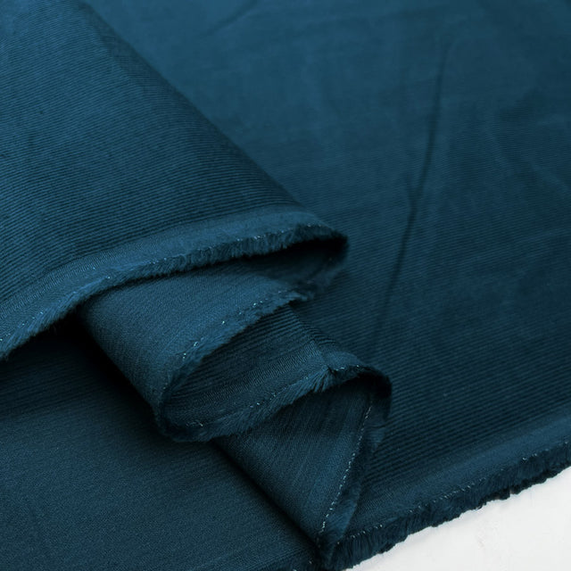 • 140cm wide, 100% cotton, 21 wale needlecord fabric in petrol blue.