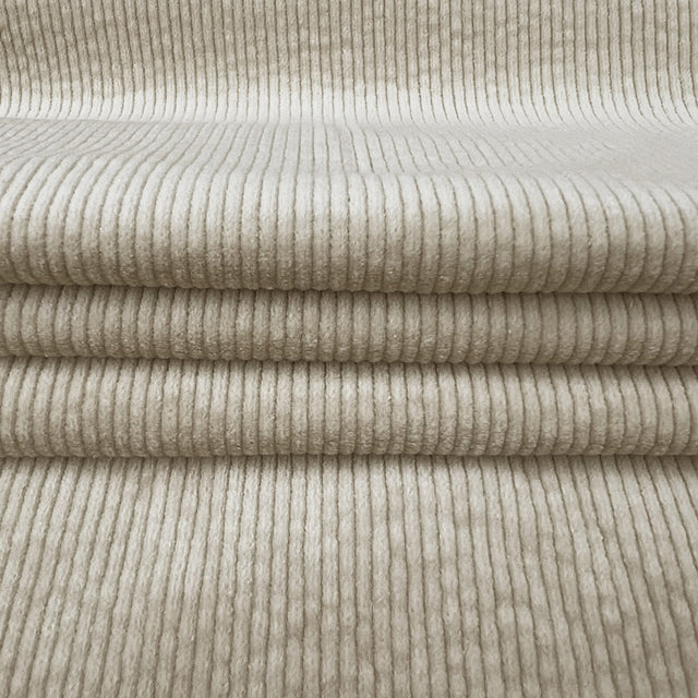 Crafted from a blend of 96% cotton and 4% spandex, this 143cm wide, 8-wale easy-care corduroy fabric in a soft cream hue guarantees a soft yet flexible finish.