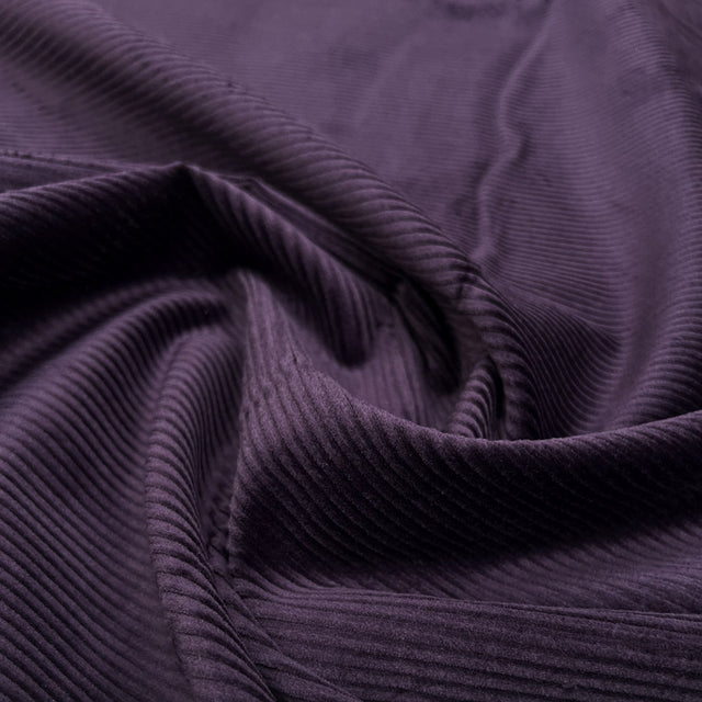 • 145cm wide, cotton & elastane corduroy fabric in plum.
