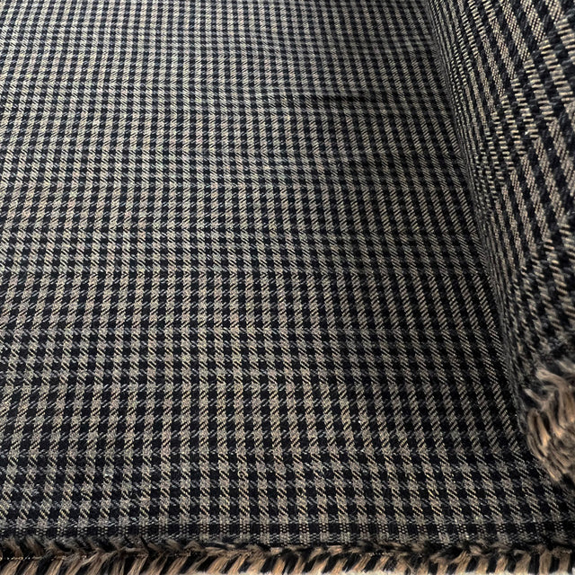 100% cotton checked shirting fabric in black and beige, perfect for dresses, pyjamas and crafts!