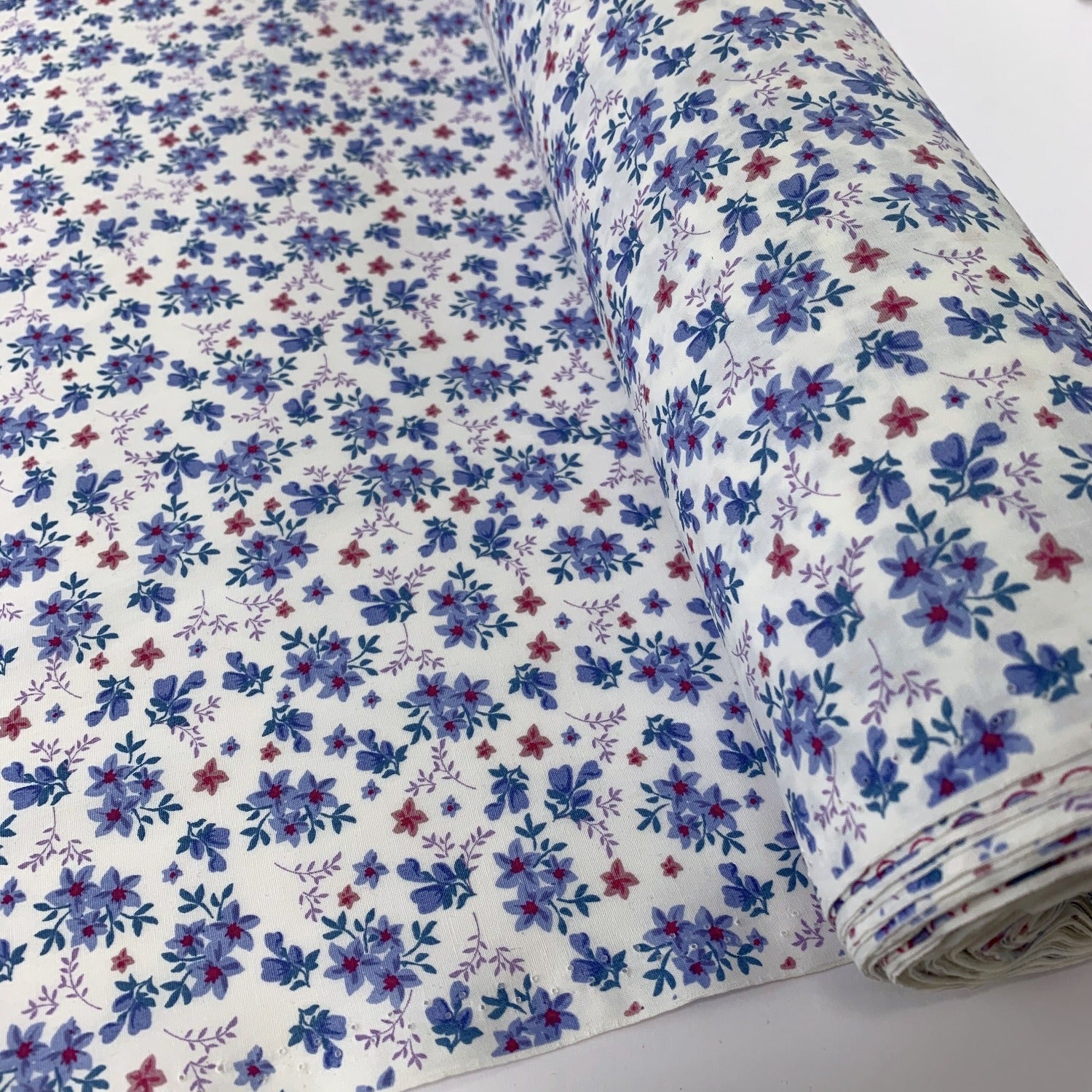 | Liberty violet cotton poplin dress fabric is a very pretty fabric with little cute violet flowers on a white background. | |