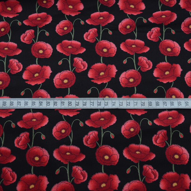 113cm wide good quality cotton poplin fabric with nice poppy print all over. Perfect for dress ,shirt and much more.