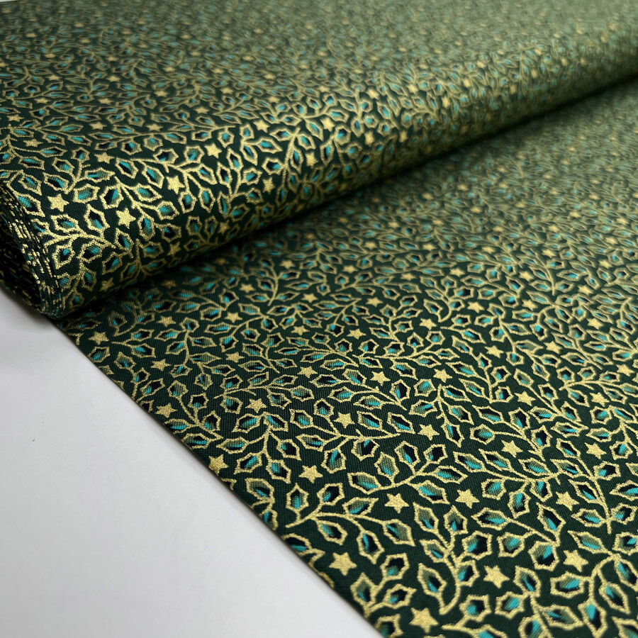 Bring festive freshness to your sewing with this 100% cotton Christmas fabric, featuring a green background decorated with gold metallic holly leaves and vines. Soft, smooth, and lightweight at 122gsm, this fabric is ideal for Christmas table settings, stockings, quilts, and festive crafts. At 140cm wide, it’s perfect for a wide range of creative holiday projects.