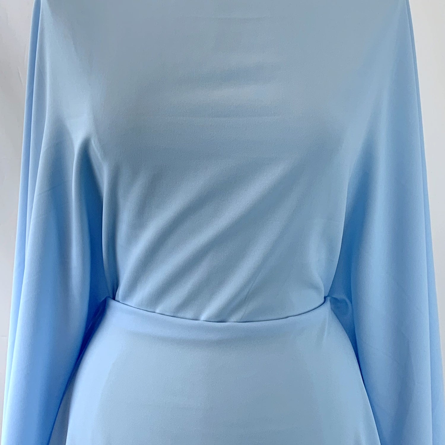 Exquisite smooth French crepe in baby blue with a small amount of elastane, perfect for a brightly coloured blazer and trouser suit. This fabric is easy to sew and great for suiting and jacketing. Great for all seasons, suitable for dresses, skirts, trousers, jackets. the perfect special occasion fabric, mother of the bride, bridesmaid and prom dress fabric This would work well in an elegant cut or a simple shift dress paired with a jacket. |