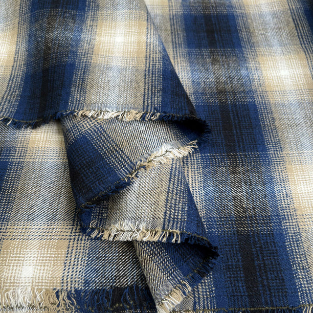 Soft, warm, and effortlessly classic, this navy, beige, and cream brushed cotton check fabric is perfect for cosy, breathable makes. Woven from cotton and brushed on one side for extra softness, it feels gentle against the skin while offering lightweight warmth and comfort. At 144cm wide and 140gsm, it’s easy to sew and ideal for shirts, pyjamas, dresses, and childrenswear. Certified to OEKO-Tex Standard 100, it’s safe, sustainable, and perfect for everyday sewing.