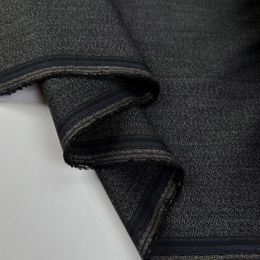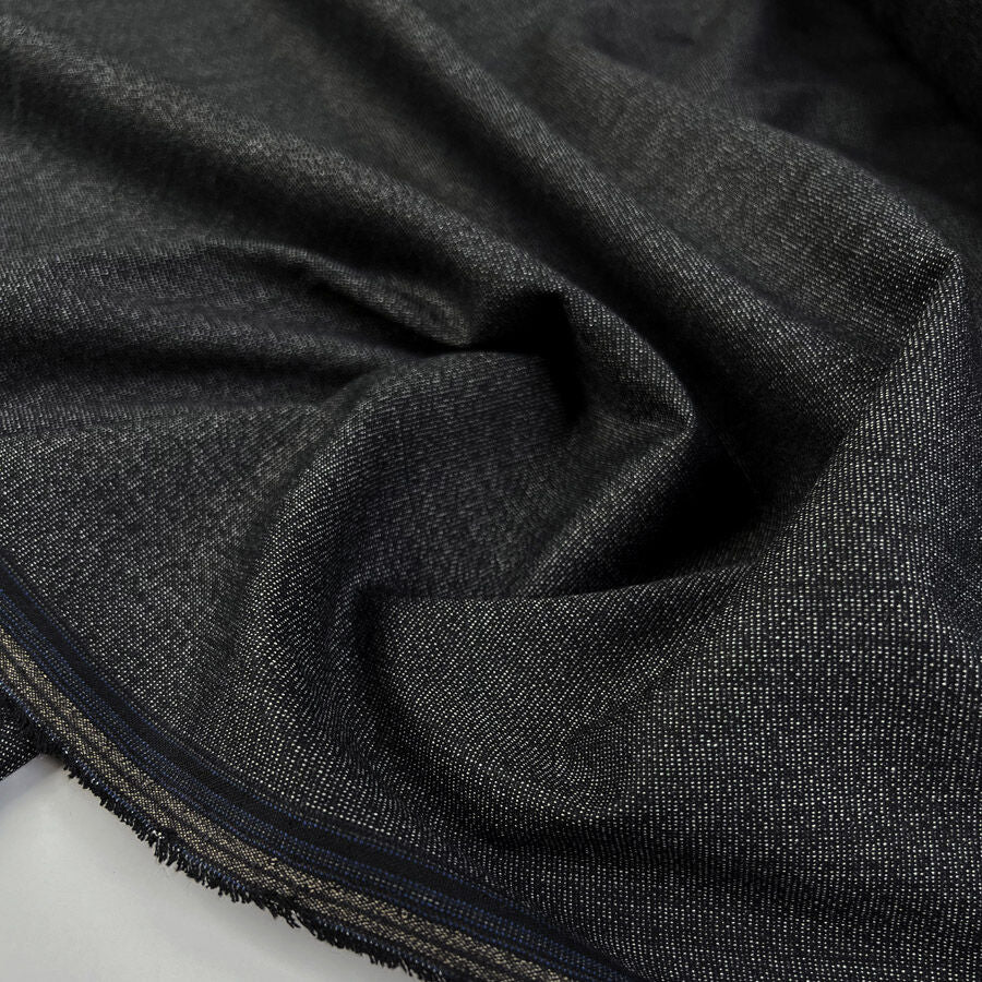 At 148cm wide, it features a subtle small white check against a deep charcoal ground, creating a timeless look that works for both casual and more structured pieces.