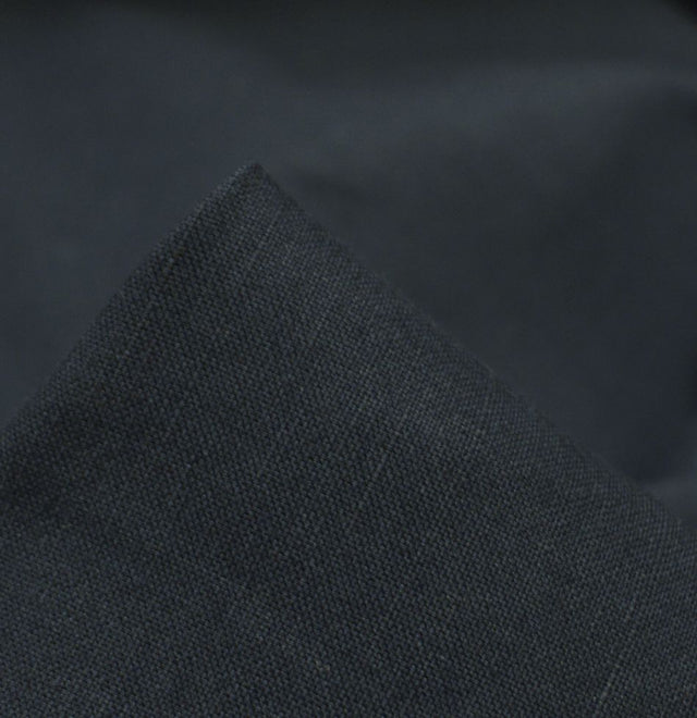 150cm wide plain weave quite floppy navy trousering fabric with a slight slubbiness to the weft adding a little surface interest.