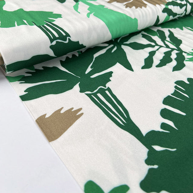 Printed with a lively bold botanical print in emerald, jade and soft taupe.