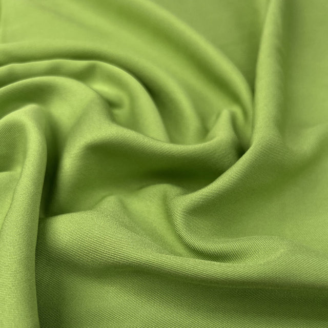 This 150cm wide viscose twill fabric, showcased in a lime green hue, is a testament to timeless elegance and versatility. With its distinctive twill weave, the fabric presents a subtle diagonal texture that enhances its visual depth and allure.