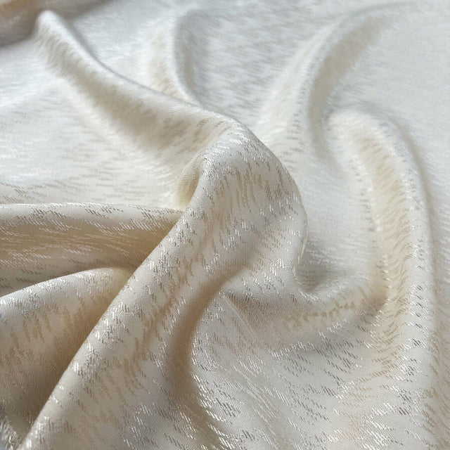 134cm wide, soft viscose fabric in a rich cream with a delicate all-over woven pattern in a subtle shiny yarn. Slinky, elegant and beautifully fluid, woven in Italy. A luxurious fabric with just the right amount of sheen and texture – perfect for chic, softly draping pieces with a refined finish.