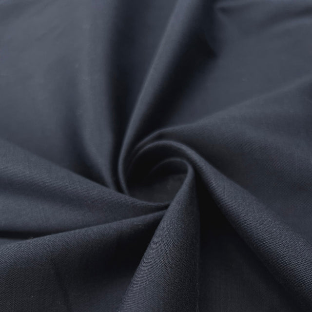 Introducing our 146cm wide fine cotton suiting & trousering fabric in a classic navy hue, elevated with a luxurious satin finish. With impeccable drape and remarkable weight, making it perfect for crafting smart and refined ensembles.