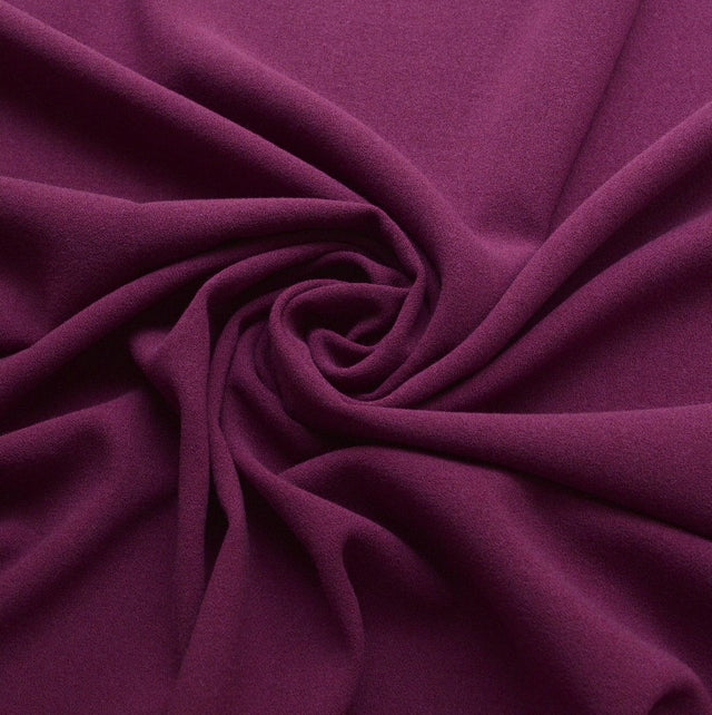 Damson Italian designer crepe dress fabric with a blend of stretch woven polyester, viscose, and spandex.