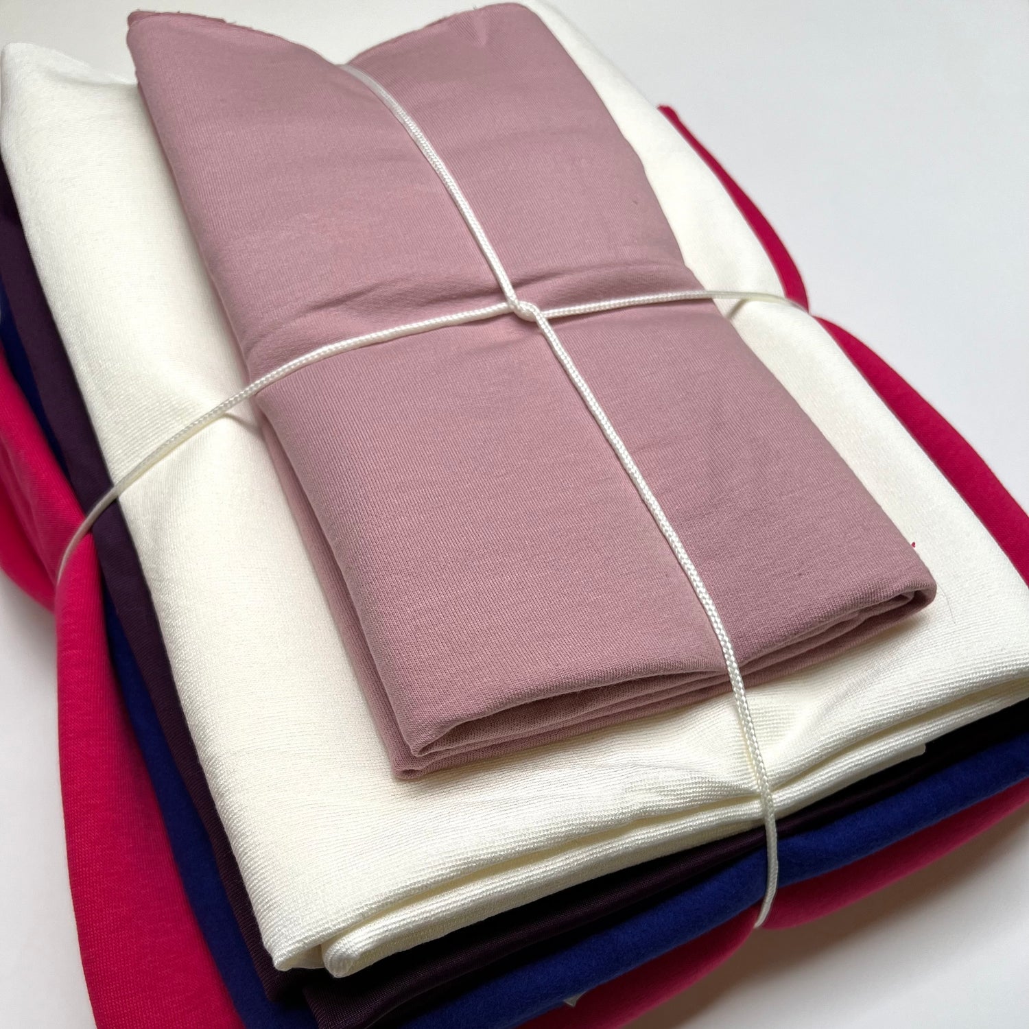 3.10m mixed bundle pack, 5 pieces of jersey fabric, ranging from 46cm - 85cm fabric pieces. Great value!