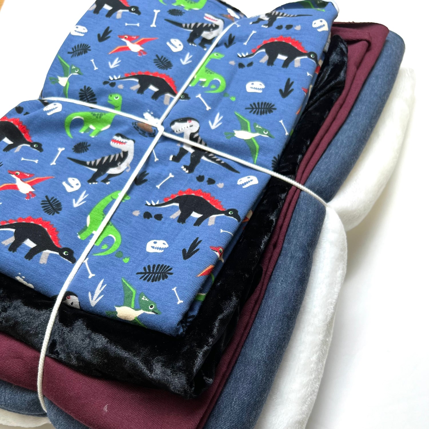 2.85m mixed bundle pack, 5 pieces of jersey fabric, ranging from 39cm - 70cm fabric pieces. Great value!