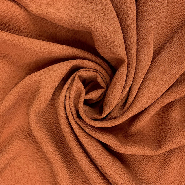 Lightweight bubble crepe dress fabric in a pale rust. This fabric is very lightweight and the kind of fabric for flowy garments, blouses with puff sleeves, layered skirts etc. It is delicate but the bubble will hide mistakes. |
