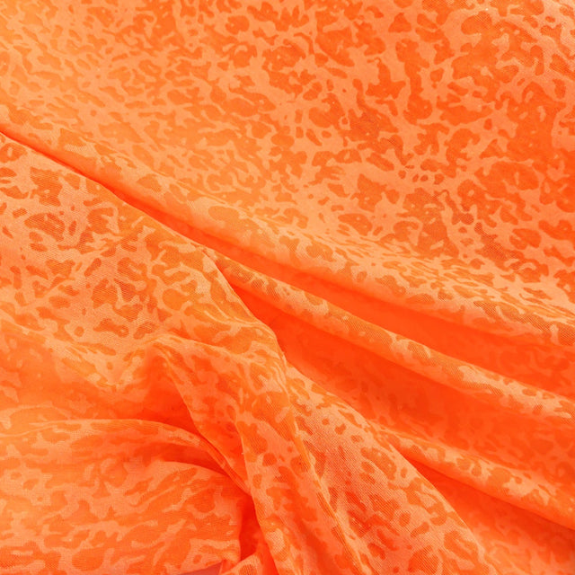 Very fine polyester burnout fashion jersey in fluorescent orange.