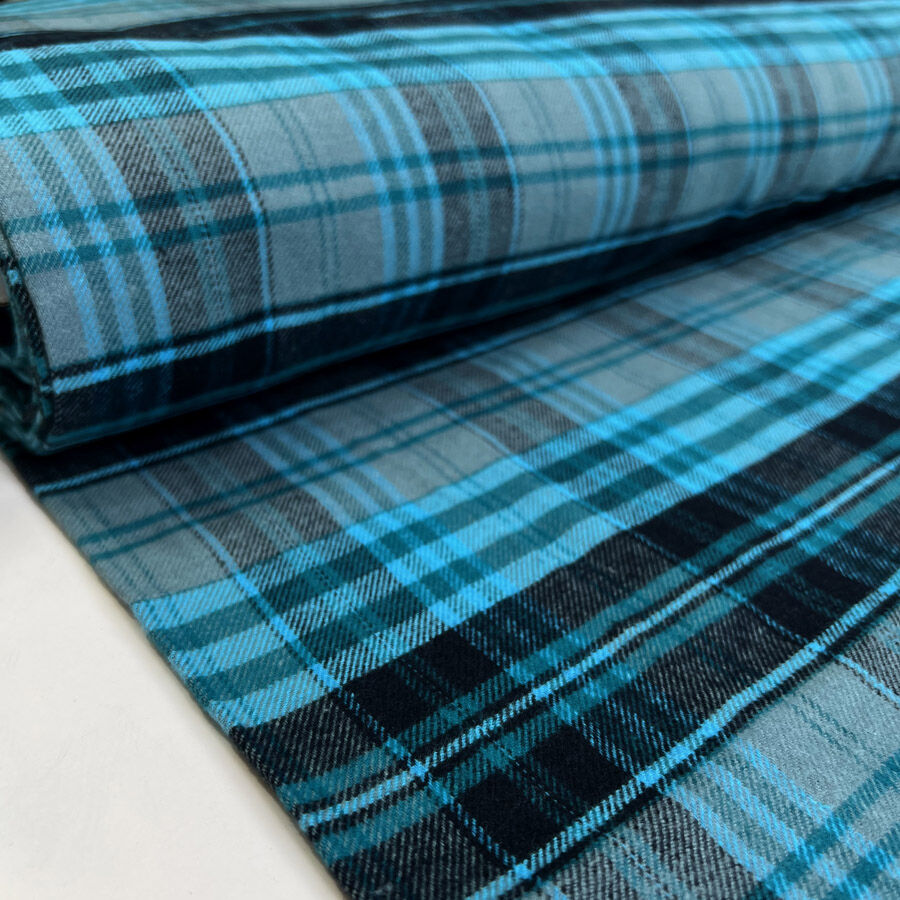 Soft, warm, and effortlessly stylish, this teal and black brushed cotton check fabric is perfect for cosy, breathable garments. Made from soft cotton and brushed on one side for added comfort, it’s gentle against the skin while offering lightweight warmth. At 144cm wide and 140gsm, it’s ideal for shirts, pyjamas, dresses, and childrenswear. Certified to OEKO-Tex Standard 100, it’s a safe and sustainable choice for everyday sewing.