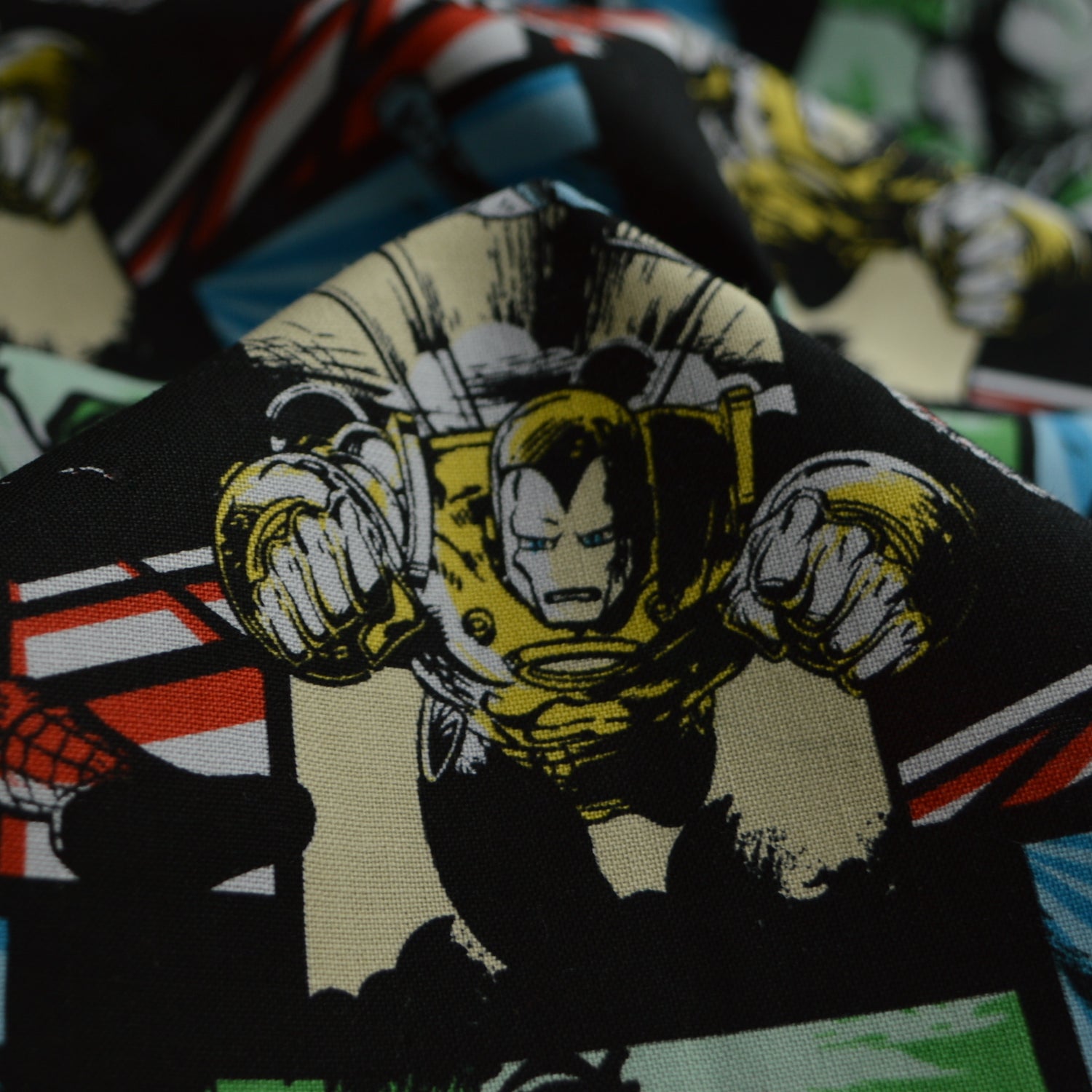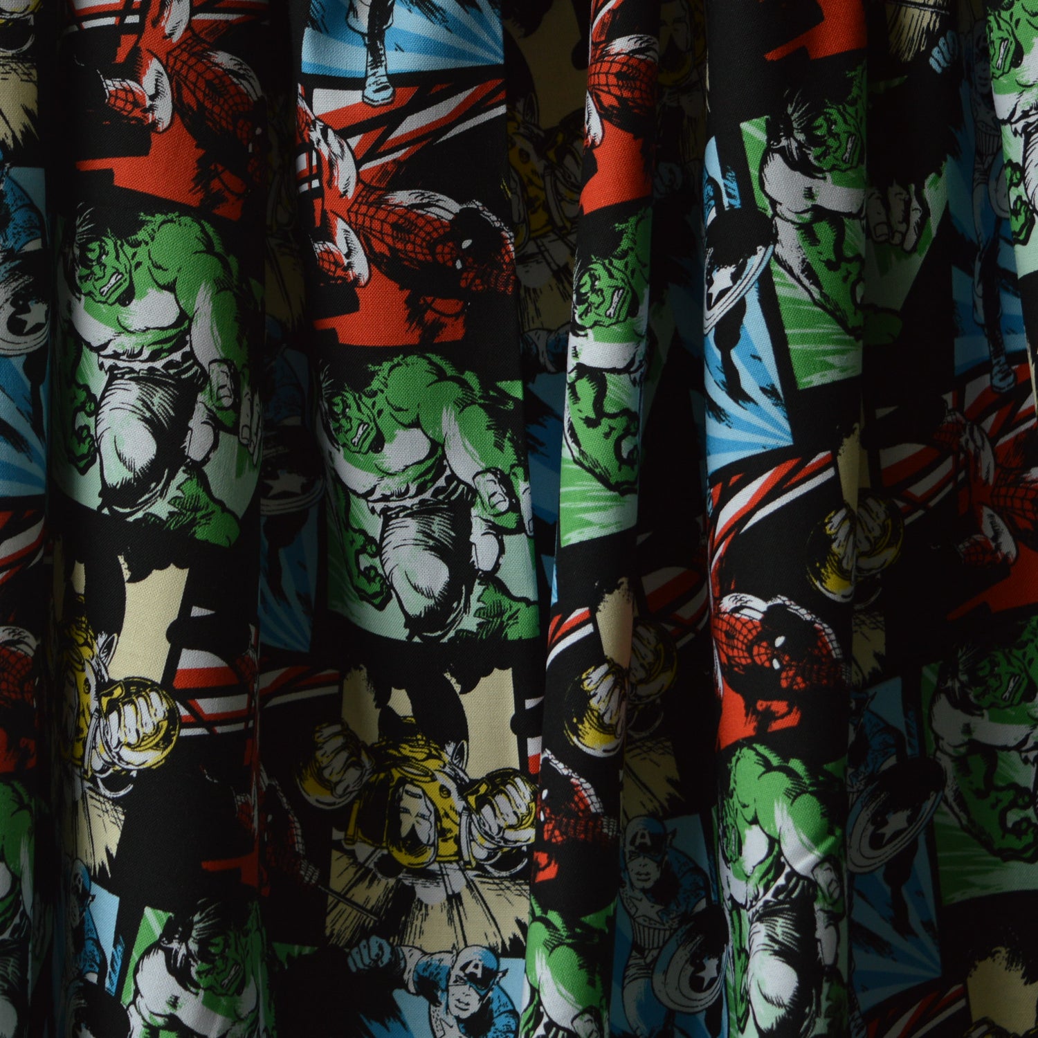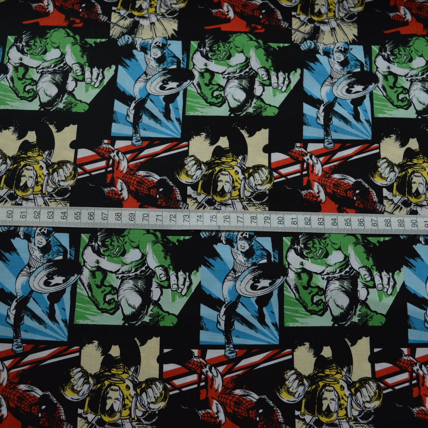 | 112cm wide cotton fabric with a montage of different marvel characters on including Captain America, Hulk and Spiderman. This fabric has excellent detail with there being lots of different colours included. Perfect for making craft items for children who are smitten by the avengers. Non commercial use. |