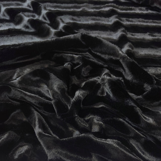 Stay warm in the most stylish way possible. This fur fabric provides both insulation and glamour, making it ideal for winter wear and glamorous evening attire alike. This exceptional fabric boasts stripes that artfully follow the warp, creating a visually stunning and harmonious design.