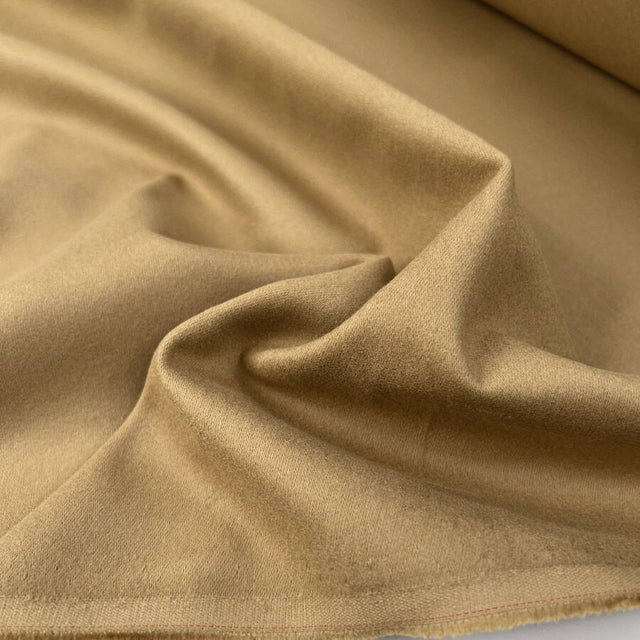 152cm wide, finely sueded cotton suiting fabric in a pale golden sand shade, woven in Italy with exceptional craftsmanship. Lightweight and supremely soft, this fabric has a velvety surface and gentle drape, offering a polished yet relaxed look that’s perfect for warm-weather tailoring and elegant everyday pieces.