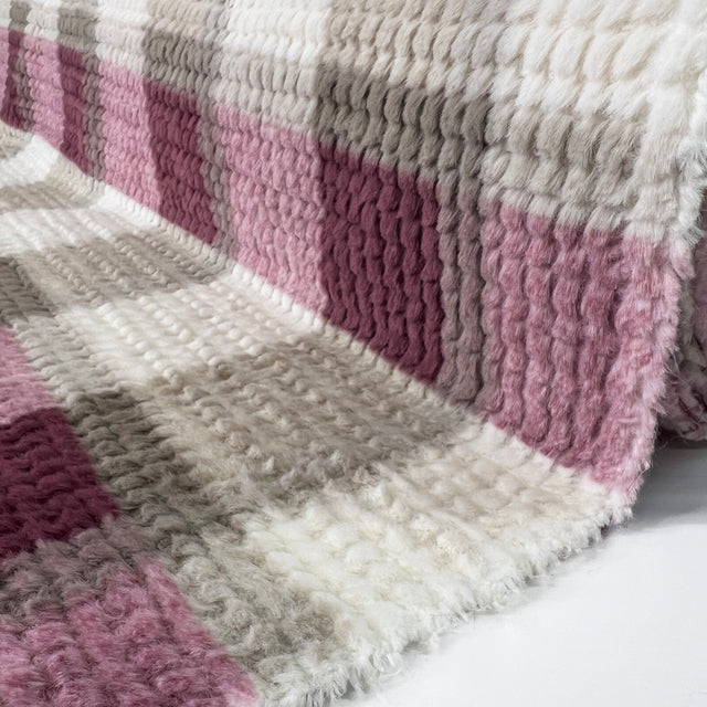 Made from 100% polyester, this super soft and fluffy fur fabric in pink has fleece on just one side; it's ideal for blankets or throws! In a pink, lilac, grey and ivory check, this cloth feels lovely against your skin. It’s nice and warm and would make the snuggest housecoat that you’ll just want to cuddle up in on colder nights! |