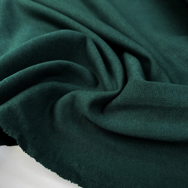 186cm wide, 100% cotton French terry sweatshirt fabric in rich bottle green with a looped back. Knitted in Italy, this fabric offers superb quality, comfort and a clean, modern finish. With its soft face and breathable loopback reverse, this is the perfect choice for cosy yet stylish everyday garments.