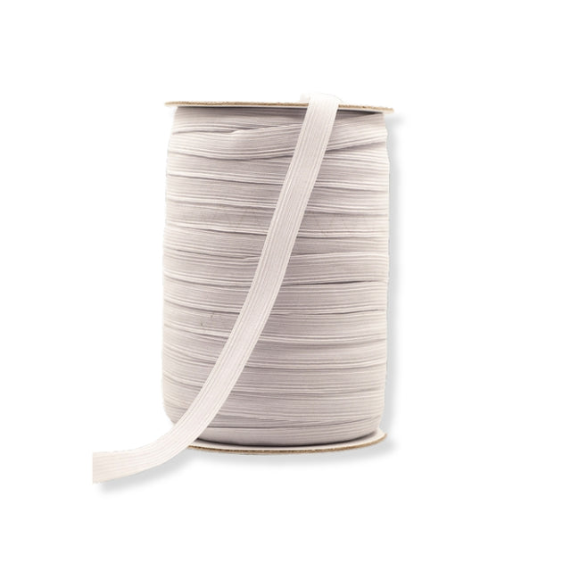 High quality 10mm wide flat woven elastic in white. Ideal for waistbands, cuffs, crafts & general sewing projects. Sold in 2, 5 or 10 metre lengths.