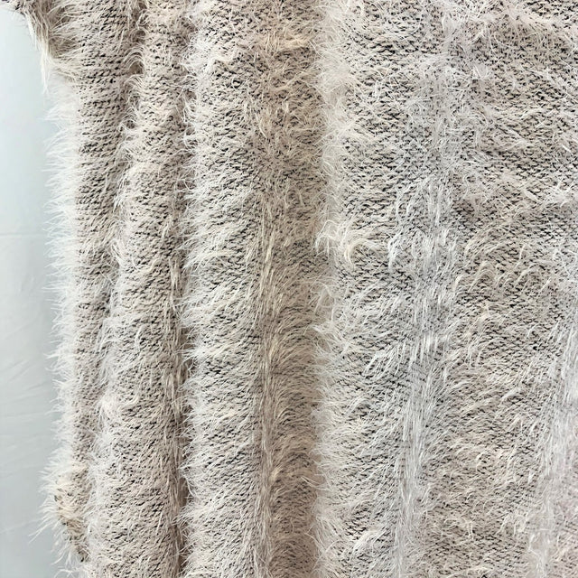 | Knitted polyester furry jumper in palest peach/pink. Great for batwing style tops, just to throw on and feel snug. | |