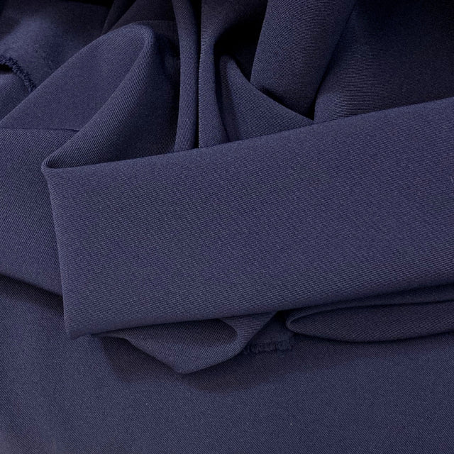 | Two way stretch suiting fabric named Dynasty has the most wonderful drape, but still has a good amount of body. Comes in dark navy blue. It contains 11% spandex fibres and has stretch in both directions, which will make this fabric very comfortable to wear. It would be ideal for making so many styles of clothing as it is such a versatile and practical fabric. It is machine washable and easy to sew. We imagine this fabric made into trousers, jackets, skirts and dresses in lots of different styles. We couldnt recommend this fabric enough! | |