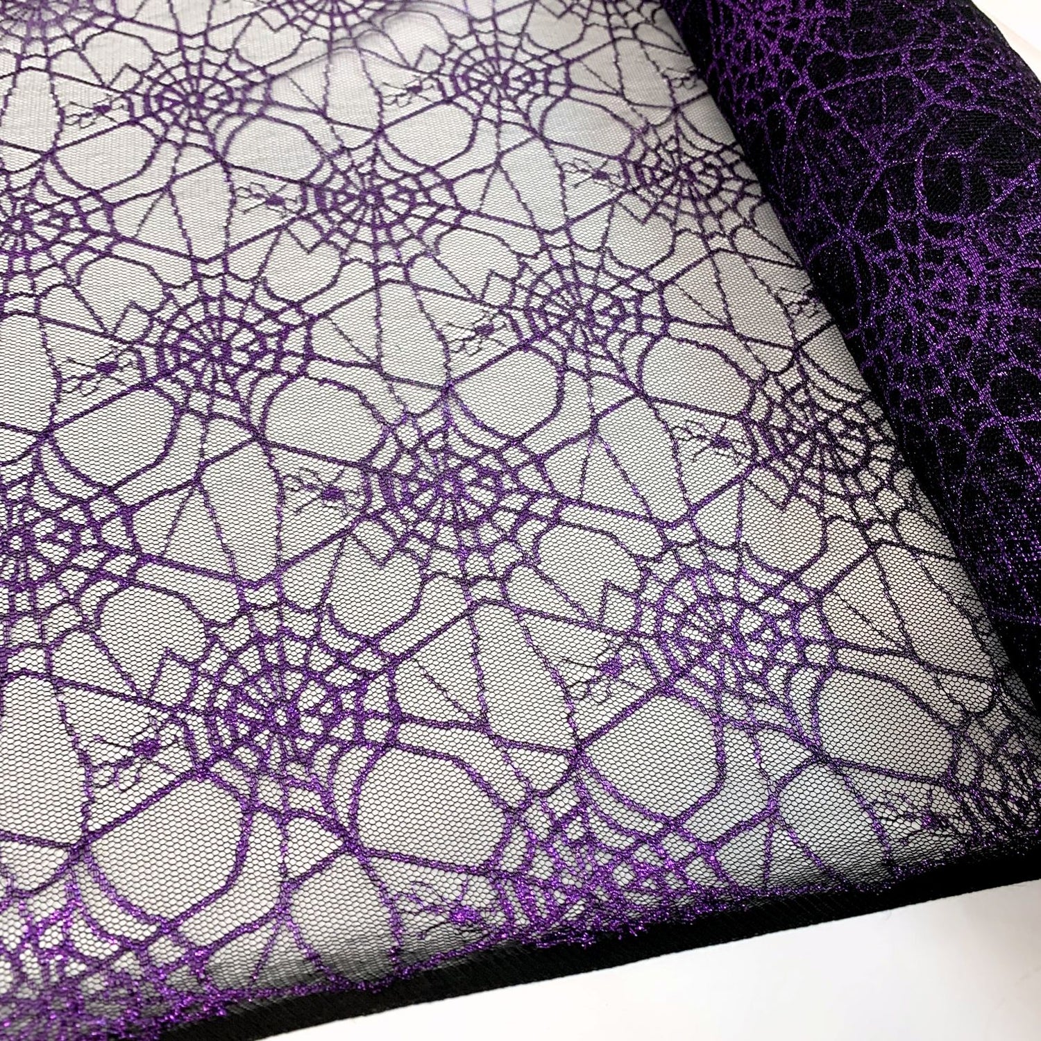 Spider web netting for that is ideal for Halloween costumes & fancy dress & decoration's. Purple Lurex on a black knitted nylon netting. The purple web is very sparkly. |