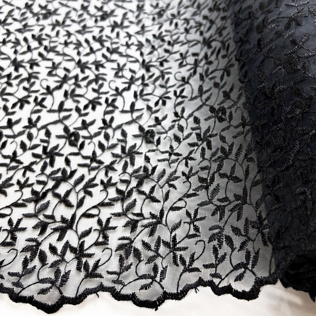 Remnant - Embroidered Organza - Black - (75cm)