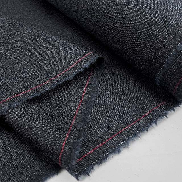 This interesting navy cloth features some black yarns throughout and has come to us from a high street brand and there isn't a lot to go around, sew it while you can.