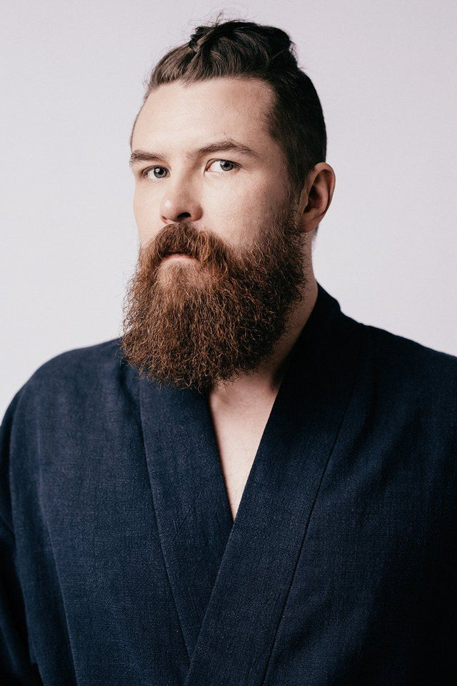 The Lahja dressing gown is a relaxed, unisex garment with a straight cut. Its name comes from the Finnish word for "gift," which is fitting because it makes for an excellent present for yourself or a friend. This gown comes in two versions: a shorter, knee-length option with cropped sleeves, and a longer version that reaches mid-leg and has full-length sleeves. Both variations include generously sized patch pockets and a belt closure for a secure fit.