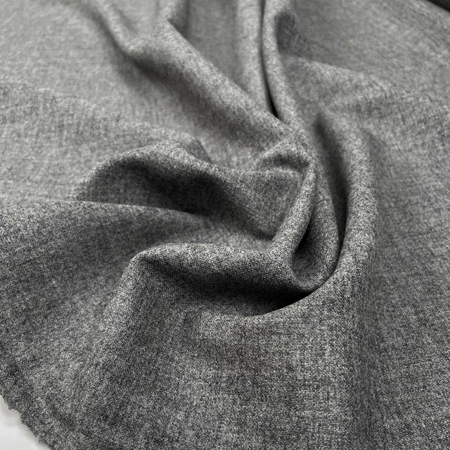 A reliable light grey wool flannel woven in a classic tabby structure, giving it that soft, brushed feel without losing its firmness. At 152cm wide and around 370–390gsm, it’s a medium-to-heavy suiting weight — warm, comfortable and easy to work with, ideal for crisp tailoring or everyday layers that need a bit of substance.