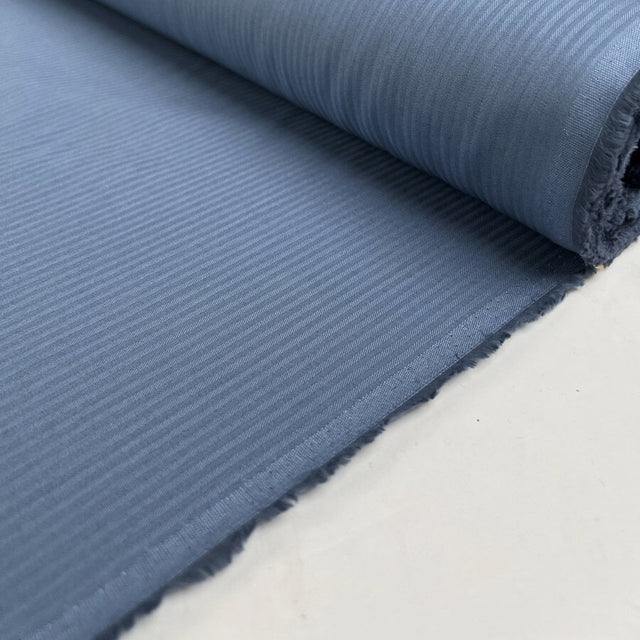 150cm wide, ex-designer Italian fine cotton shirting fabric in mid blue, featuring a shadow weave that creates a subtle striped effect.