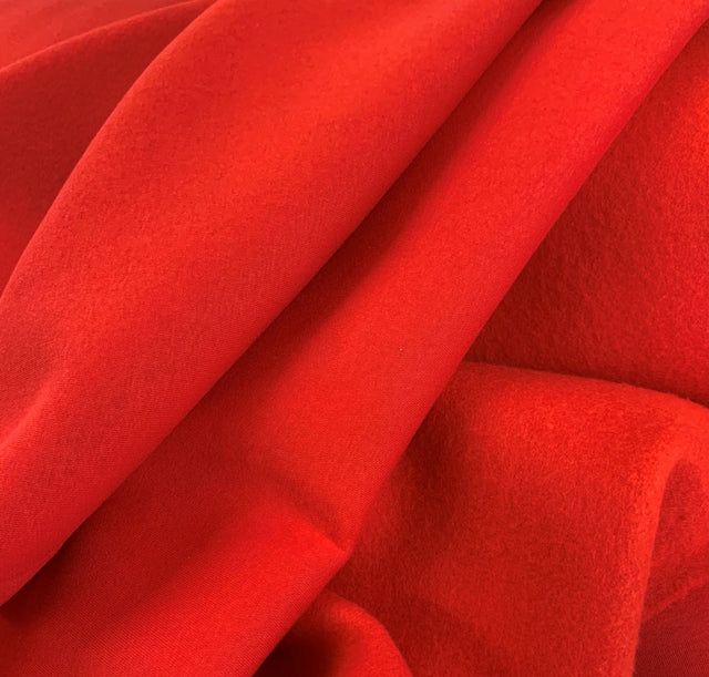 Plain knitted sweatshirt fabric in red. Made with 70% cotton and 30% polyester, this 280gsm fabric is perfect for creating cosy hoodies, sweatshirts, shorts, and joggers. Its gloriously soft backing ensures extra comfort, while the polyester blend makes it lighter and quicker to dry than pure cotton.