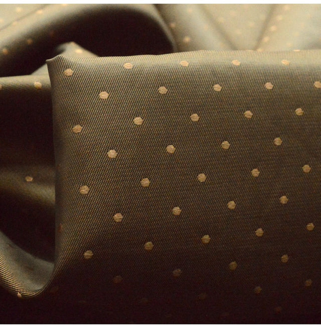 A 150cm wide, 100% Polyester dress lining fabric with an all over small spotty design in a coffee brown colour. This is perfect for suits or dresses!